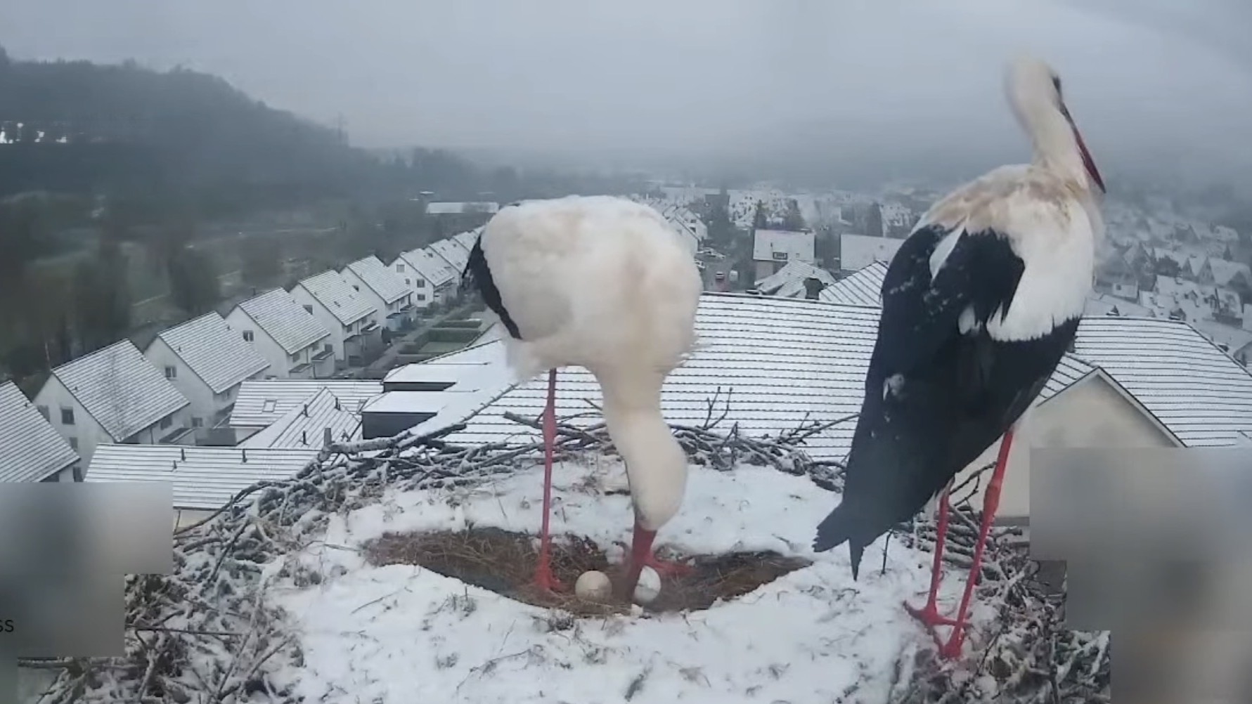 Mittwoch, 1.4.2026 - 1. April 26, 01.49 Uhr hat Judith nachgelegt. Ei Nummer zwei ist da. Ganz ohne Aprilscherz. Dafür mit einer ordentlichen Portion Schnee obendrauf.