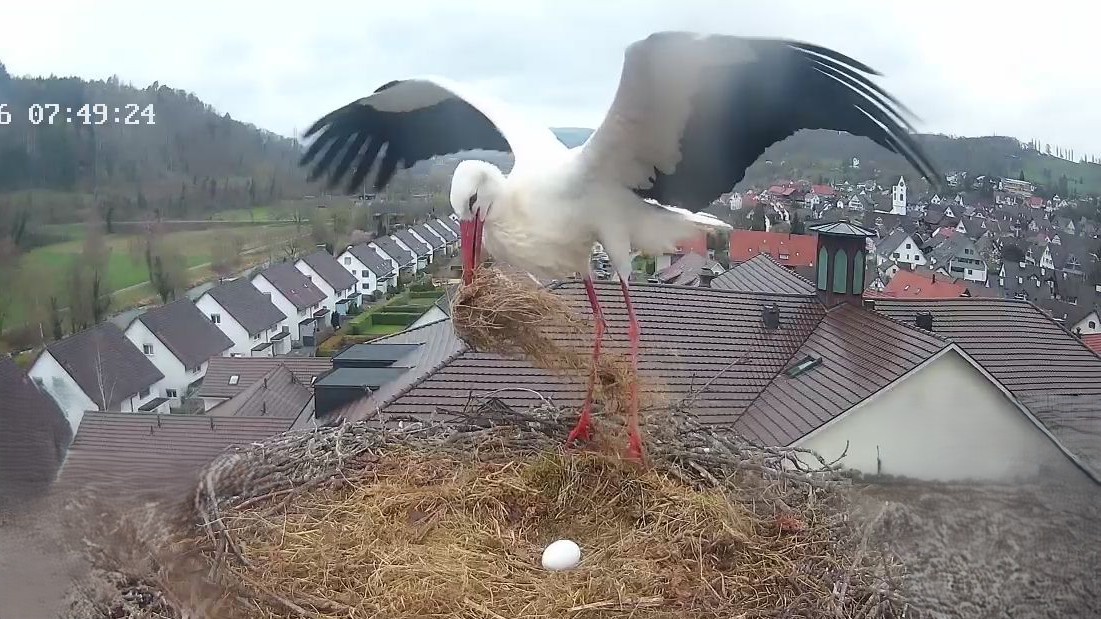 Montag, 30.3.2026 - Heute Morgen um 02:12 Uhr war es soweit: Störchin Judith hat das erste Ei der diesjährigen Saison gelegt. Damit beginnt wieder eine spannende Zeit im Horst. Weissstörche legen ihre Eier in der Regel im Abstand von rund zwei ...